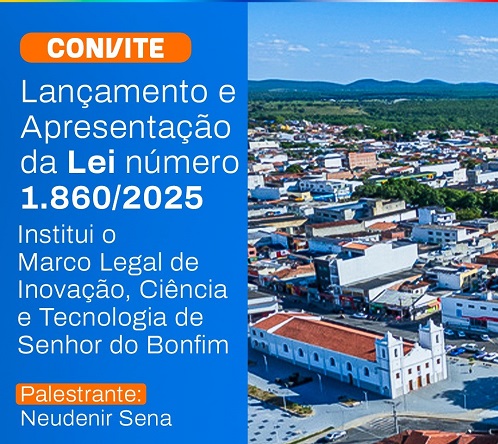 A Prefeitura de Senhor do Bonfim, por meio da Secretaria Municipal de Desenvolvimento Econômico e Turismo, realiza nesta quinta-feira (19), às 14h, no auditório do Sebrae, o evento de lançamento e apresentação da Lei nº 1.860/2025, que institui o Marco Legal da Inovação, Ciência, Tecnologia e Sustentabilidade no município. O evento contará com palestra do […]