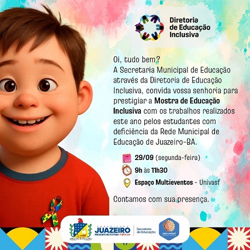 A Prefeitura de Juazeiro, por meio da Secretaria de Educação/Seduc, vai promover na próxima segunda-feira (29) a primeira Mostra de Educação Inclusiva da rede municipal.