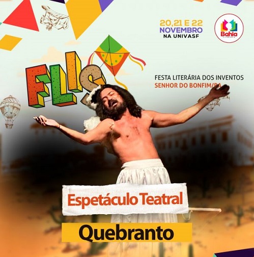 O ator Elder Ferrari apresenta, no sábado 22 de novembro, às 16h, durante a FLIS – Festa Literária dos Inventos, o espetáculo livro-espetáculo-música-arte Quebranto, na Universidade Federal do Vale do São Francisco (Univasf), campus Senhor do Bonfim.