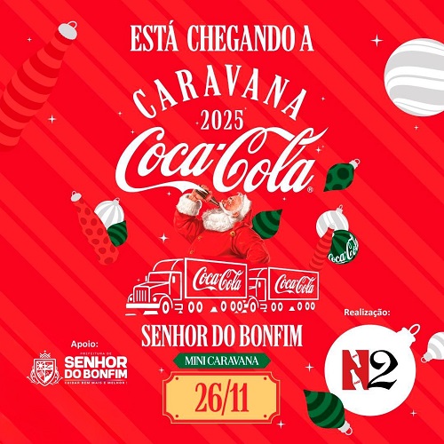Senhor do Bonfim vai receber pela primeira vez, no dia 26 de novembro, a tradicional Mini Caravana da Coca-Cola, espetáculo itinerante que há décadas encanta famílias em todo o Brasil e se tornou um dos maiores símbolos do espírito natalino. A ação é realizada pela N2, representante oficial da Coca-Cola na região, com total apoio da Prefeitura de Senhor do Bonfim.