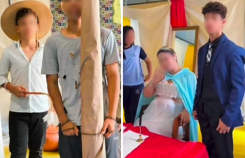 “Uma escola de Alagoinhas, na Bahia, uma escola privada e religiosa, que decidiu fazer um trabalho na Semana da Consciência Negra em homenagem ao histórico de lutas das comunidades negras. E teve a brilhante ideia, o corpo docente, de colocar um menino negro num tronco recebendo chicotadas em memória à luta negra no Brasil. E também teve a brilhante ideia de colocar uma menina branca com uma caneta na mão assinando a Lei Áurea para representar a memória do povo negro”, falou, acrescentando outra cena que aparece nas imagens postadas pelo colégio.