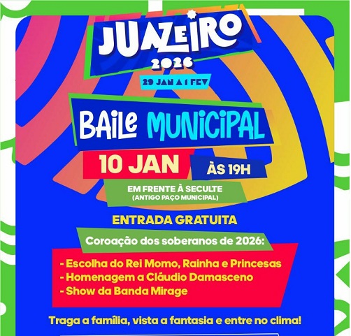 Juazeiro já vive o clima do Carnaval com a realização do tradicional Baile Municipal, evento que marca a coroação dos soberanos do Carnaval 2026 da cidade: Rei Momo, Rainha e Princesas. A festa acontece neste sábado (10), a partir das 19h, na Secretaria de Cultura, Turismo e Esportes / Secult (no antigo Paço Municipal).