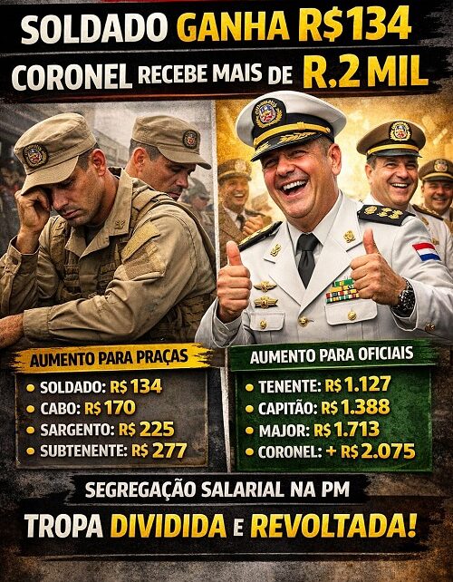 A diferença é evidente: enquanto um soldado recebe pouco mais de R$ 134 de aumento, um coronel terá mais de R$ 2 mil na mesma gratificação.