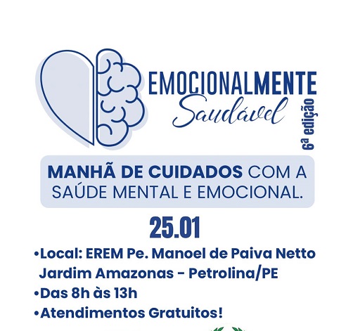Em sintonia com a campanha nacional Janeiro Branco 2026, dedicada à conscientização sobre a importância da saúde mental e emocional, o Instituto Eliana Sicsú (IES) promove, no próximo domingo (25), a 6ª edição do projeto “Emocionalmente Saudável”. A ação acontece das 8h às 13h, na EREM Escola Padre Manoel de Paiva Netto, localizada no bairro