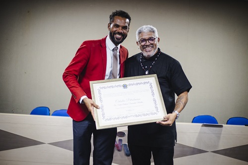 Em uma festa atravessada por momentos emocionantes, o Dia Mundial do Teatro foi comemorado, nesta quarta-feira (27), com a entrega do Título de Cidadão Petrolinense ao ator, diretor, dramaturgo, produtor e cofundador da Cia Biruta de Teatro, Antonio Veronaldo. A honraria foi concedida em uma sessão solene da Câmara de Vereadores de Petrolina, presidida pela