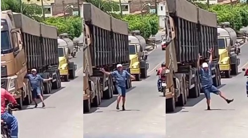 Um caminhoneiro de 58 anos foi detido em Machados, no interior de Pernambuco, depois de realizar uma manobra arriscada na rodovia PE-084, conhecida como Ladeira do Cristo. O caso ocorreu na segunda-feira (15) e foi registrado em vídeo por uma testemunha. Nas imagens, divulgadas pela TV Globo, é possível ver o homem saindo da cabine
