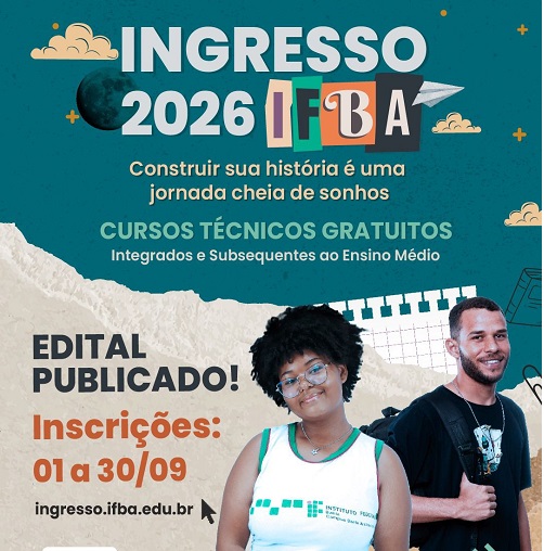 O Instituto Federal de Educação, Ciência e Tecnologia da Bahia (IFBA), campus Juazeiro, está com inscrições abertas para o Ingresso 2026. A oportunidade é para quem deseja estudar em cursos técnicos gratuitos, nas áreas de Administração e Segurança do Trabalho. • Cursos Integrados – voltados para quem já concluiu o ensino fundamental II e deseja