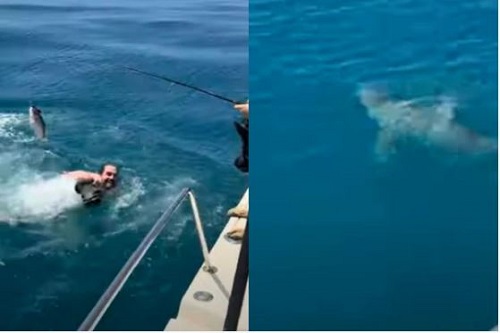 Um homem foi surpreendido ao mergulhar em alto-mar e dá de cara com um tubarão. O vídeo divulgado no TikTok viralizou e deixou internautas em choque. Stella Privett, que divulga conteúdos de pescaria, mostrou o momento em seu perfil nas redes sociais nesta semana. O vídeo mostra um momento familiar de pescaria em uma lancha,