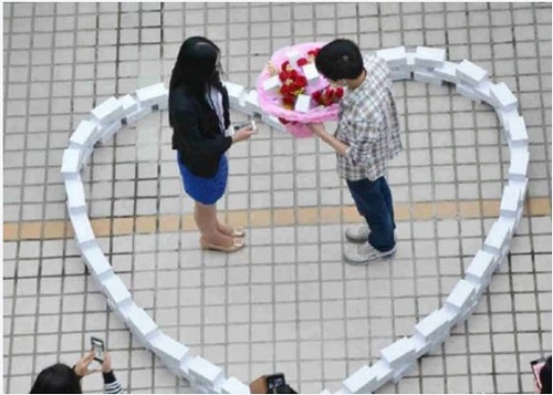 Um programador de Guangzhou, na China, protagonizou um pedido de casamento que ganhou o mundo em 2014, mas que terminou de forma frustrante. No Dia dos Solteiros, celebrado em 11 de novembro, ele comprou 99 unidades do iPhone 6 e organizou os aparelhos em formato de coração para surpreender a namorada. De acordo com veículos