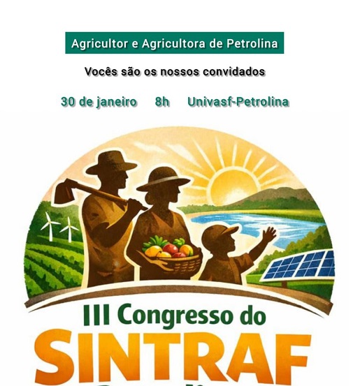 O III Congresso do Sintraf-Petrolina, que acontece no dia 30 de janeiro, a partir das 8h, na Univasf – Petrolina, segue fortalecendo o debate sobre o papel estratégico da agricultura familiar no desenvolvimento do município e da região. Com o tema “Terra, Gente e Futuro”, o congresso contará com uma programação de palestras voltadas à